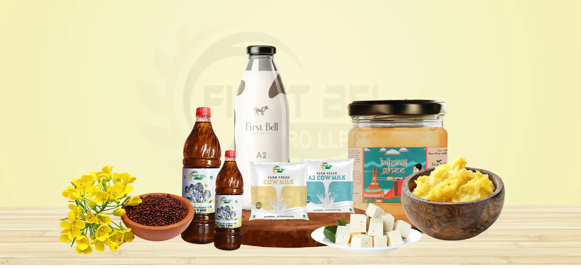 First Bell Agro is a leading supplier and manufacturer of dairy products and oil. Our company is a Jamshedpur-based farmer-led dairy and oil brand built on transparency, trust, and tradition. As farmers, we understand the value of pure, chemical-free, and organic food. So, we nurture our cows, cultivate mustard crops, and oversee every stage of production.